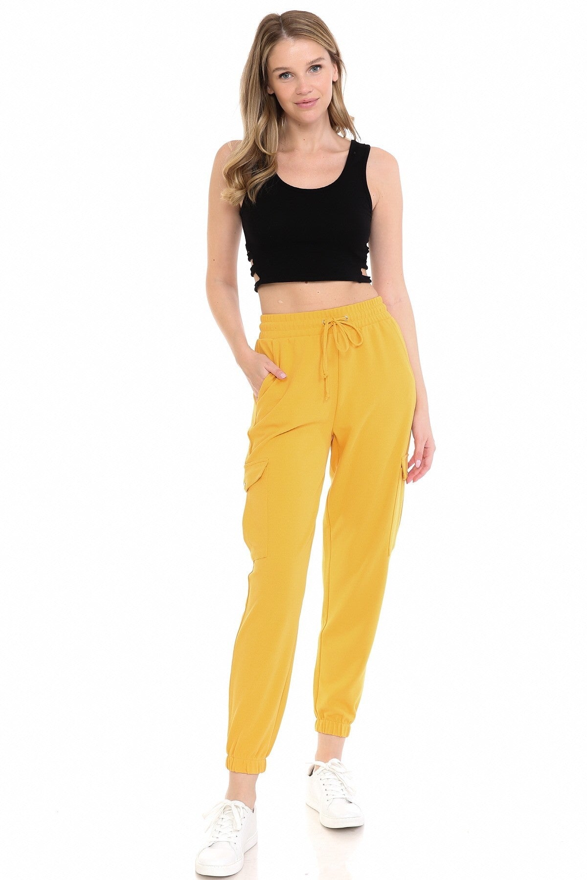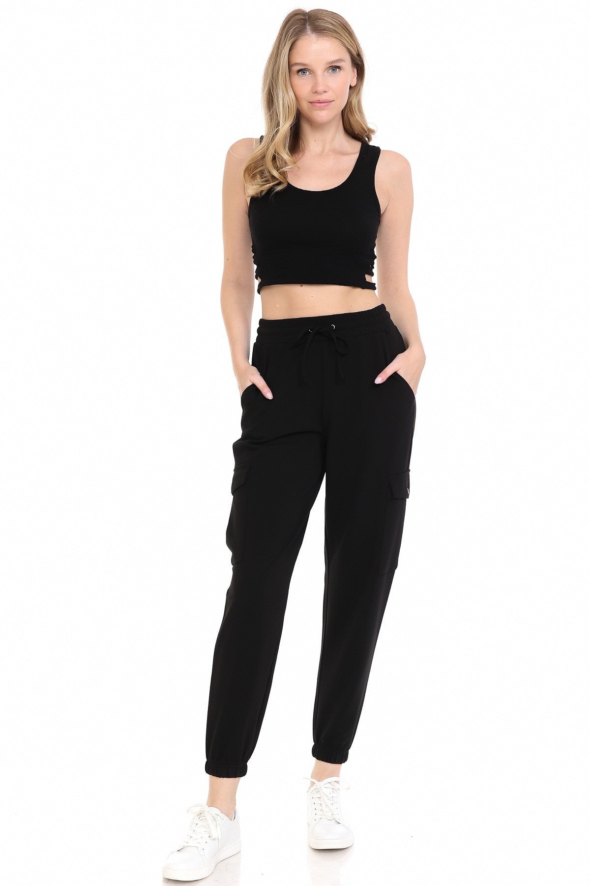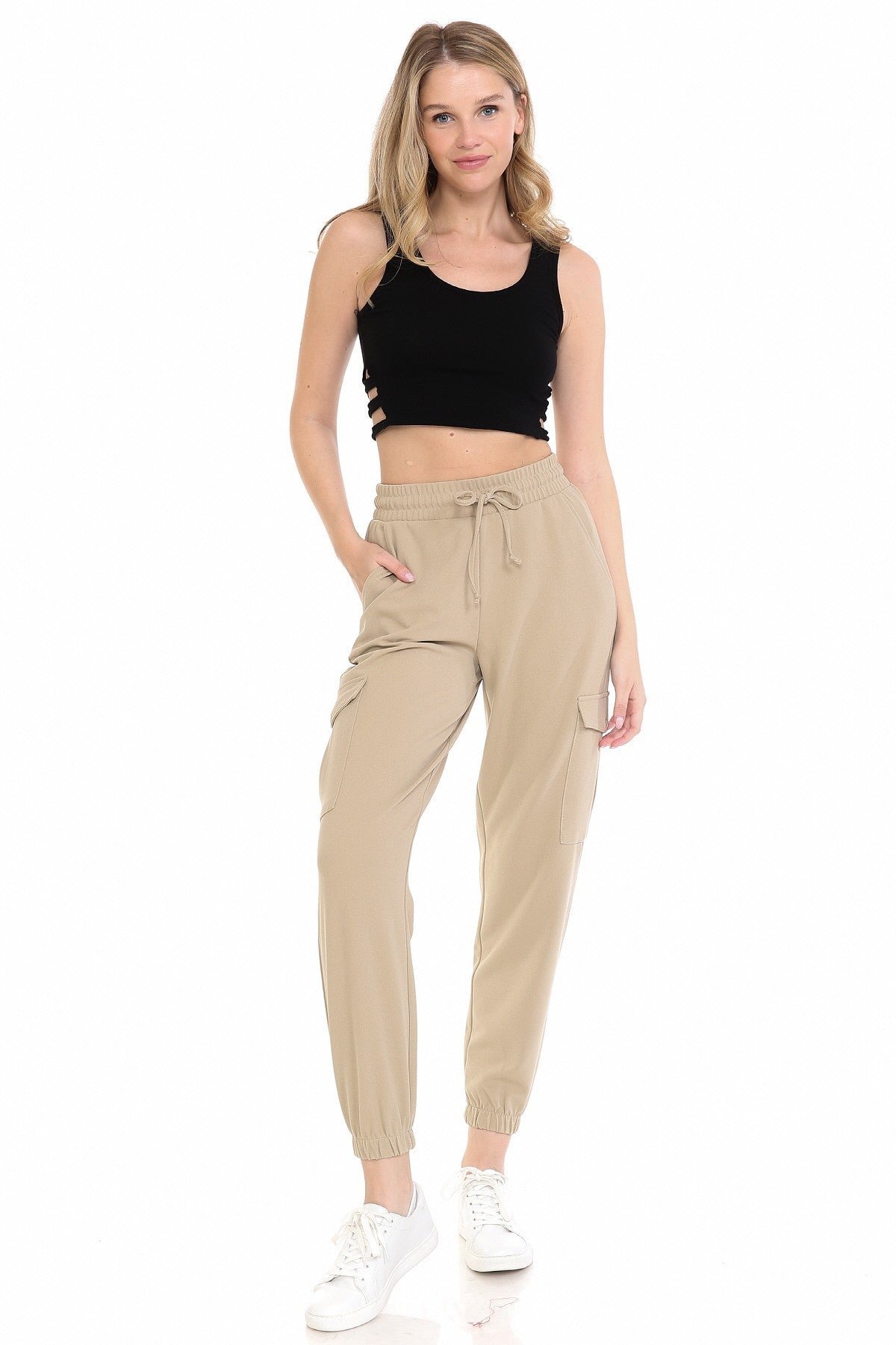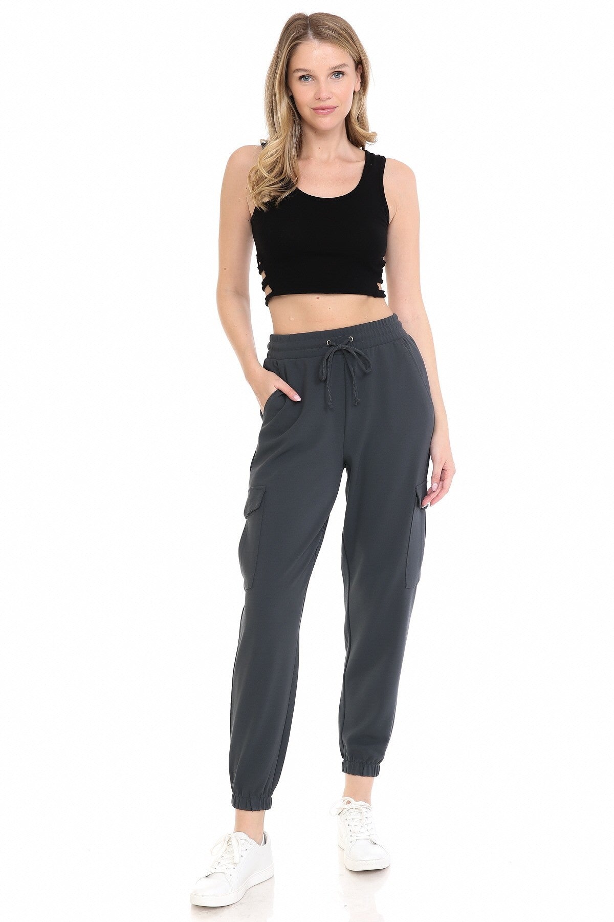 Cropped Cargo Jogger with pockets and drawstring waist. If you've tried our leggings or joggers before, well, these are different! A heavier material and although the components (95% poly/5% spandex) are similar to our leggings and standard joggers, these have more of a polyester weight and feel.