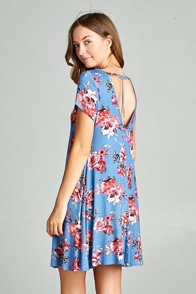 Made from a t-shirt material, this dress is sure to become one of your favourites! The classic but delicate floral pattern can easily be up-styled when you want to dress up a bit but it also pairs beautifully with a denim jacket and flip flops.
