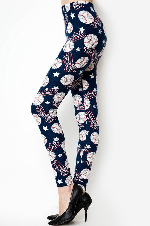 Show off your sports love with our Take Me to the Ball Game leggings! These navy leggings feature a classic baseball print, soft and stretchy fabric, and a comfortable fit. Perfect for game days, team spirit, and everyday casual styles. Whether you're a fan of the big leagues or the little leagues, the buttery soft leggings are perfect for showing your love of the sport!